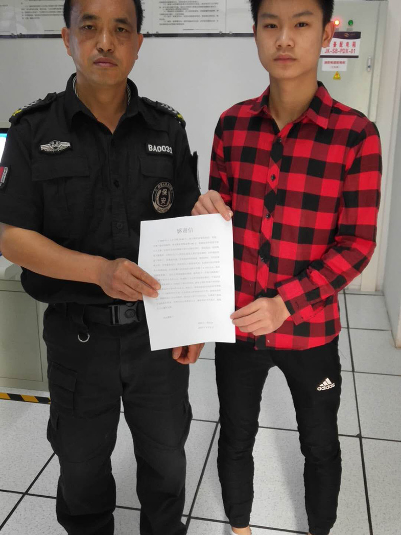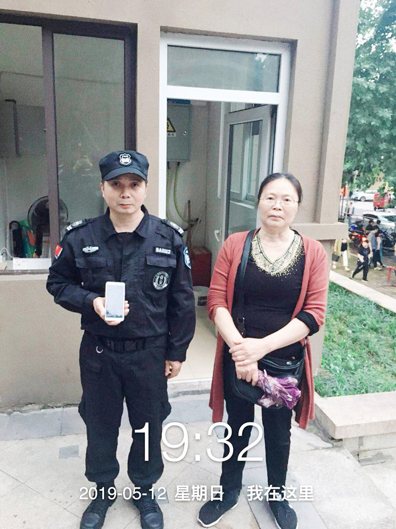 2、2019年5月8日上午11點(diǎn)08分,陽(yáng)光一百南區(qū)中威戰(zhàn)士謝金云正在執(zhí)勤時(shí),拾到一部蘋(píng)果手機(jī),擔(dān)心失主著急,謝金云立即上報(bào)隊(duì)長(zhǎng)并詢問(wèn)R區(qū)廣場(chǎng)上的路人是否有人遺失了東西,正在謝金云詢問(wèn)的過(guò)程中,他接到了失主程女士用其他手機(jī)撥過(guò)來(lái)的電話,謝金云這顆為失主焦慮不安的心才得以放下。謝金云告訴失主程女士讓她前往陽(yáng)光一百南區(qū)客服中心領(lǐng)取手機(jī),程女士連聲感謝。